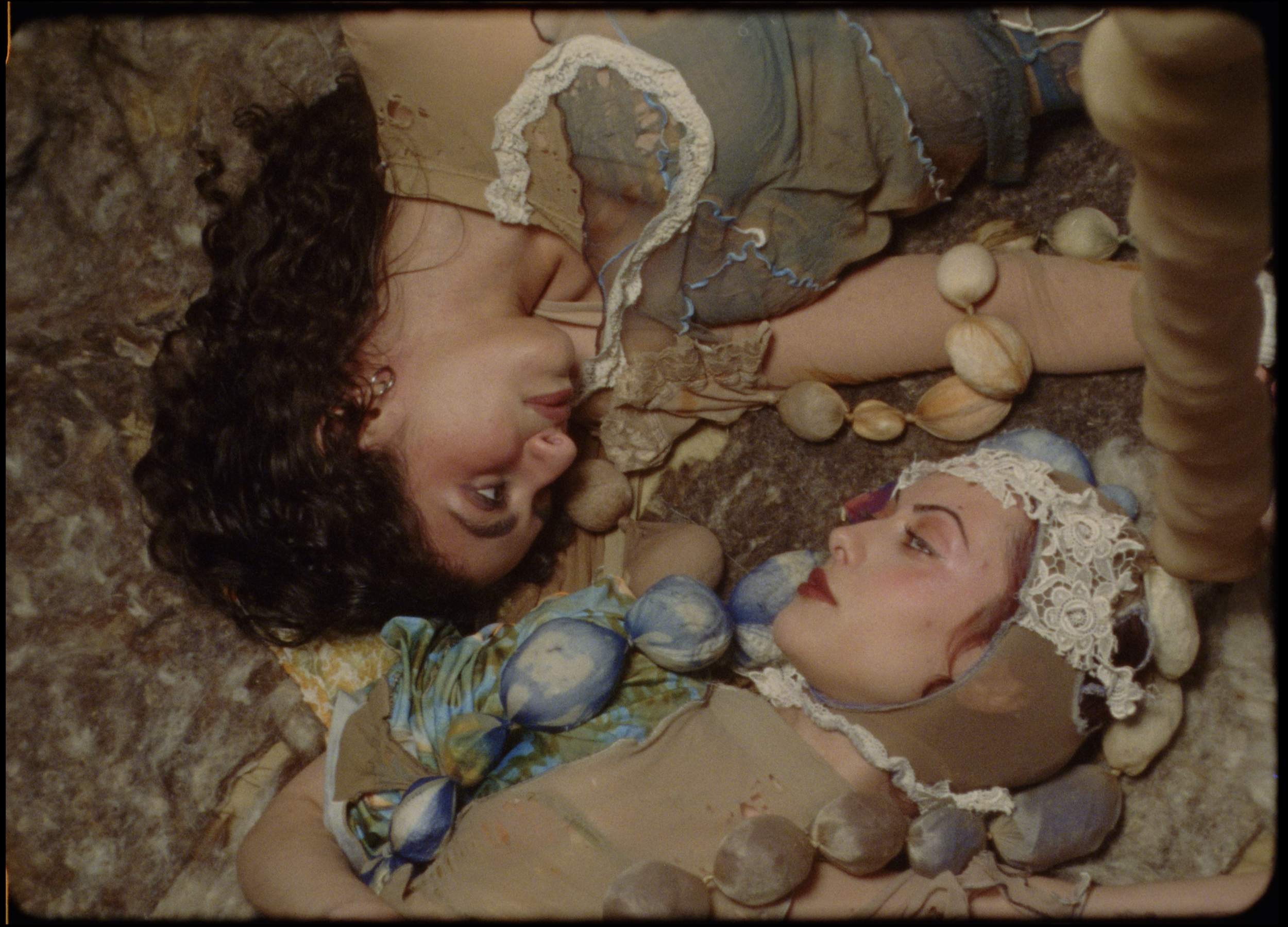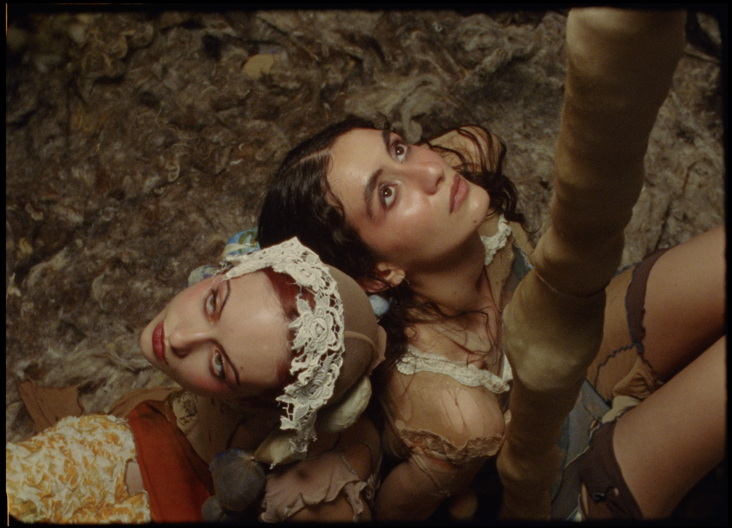 For example, Settlement of the Heart was a collaborative project between several filmmaker friends and me. The work centres on an exploration of the raw intimacy and quiet resistance of femininity, portrayed through two friends longing for escape who create a new environment—a sanctuary in which to retreat. As they step into this self-made refuge, their anxieties and fears begin to fade, allowing a liberated and playful self to emerge. To emphasise this transformation, it was important to create a clear contrast between the interior and exterior of the refuge, constructing a surreal setting that combined organic warmth with a gritty atmosphere. Knowing the project would be shot in a studio, I chose 500T (tungsten) film stock, which helped achieve the desired level of grain and texture while enhancing the warmth of the refuge at the centre of the piece. In addition, I carefully designed the lighting so that the varied textures of the set were accentuated through a combination of soft and hard light sources. Painted shapes on the tent were highlighted by this approach, while the surrounding space remained darker, allowing the outside world to retain an air of mystery and intrigue.
