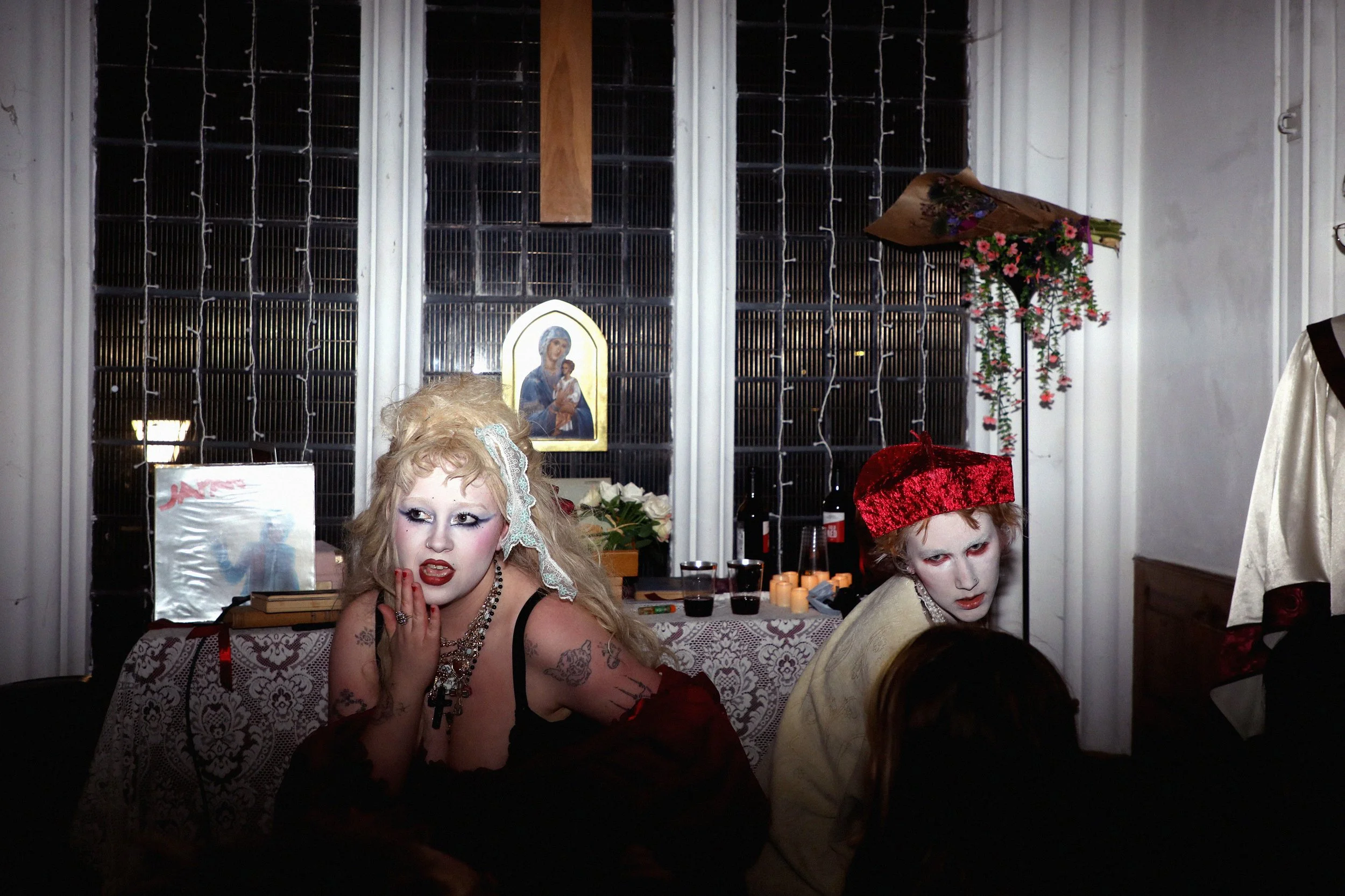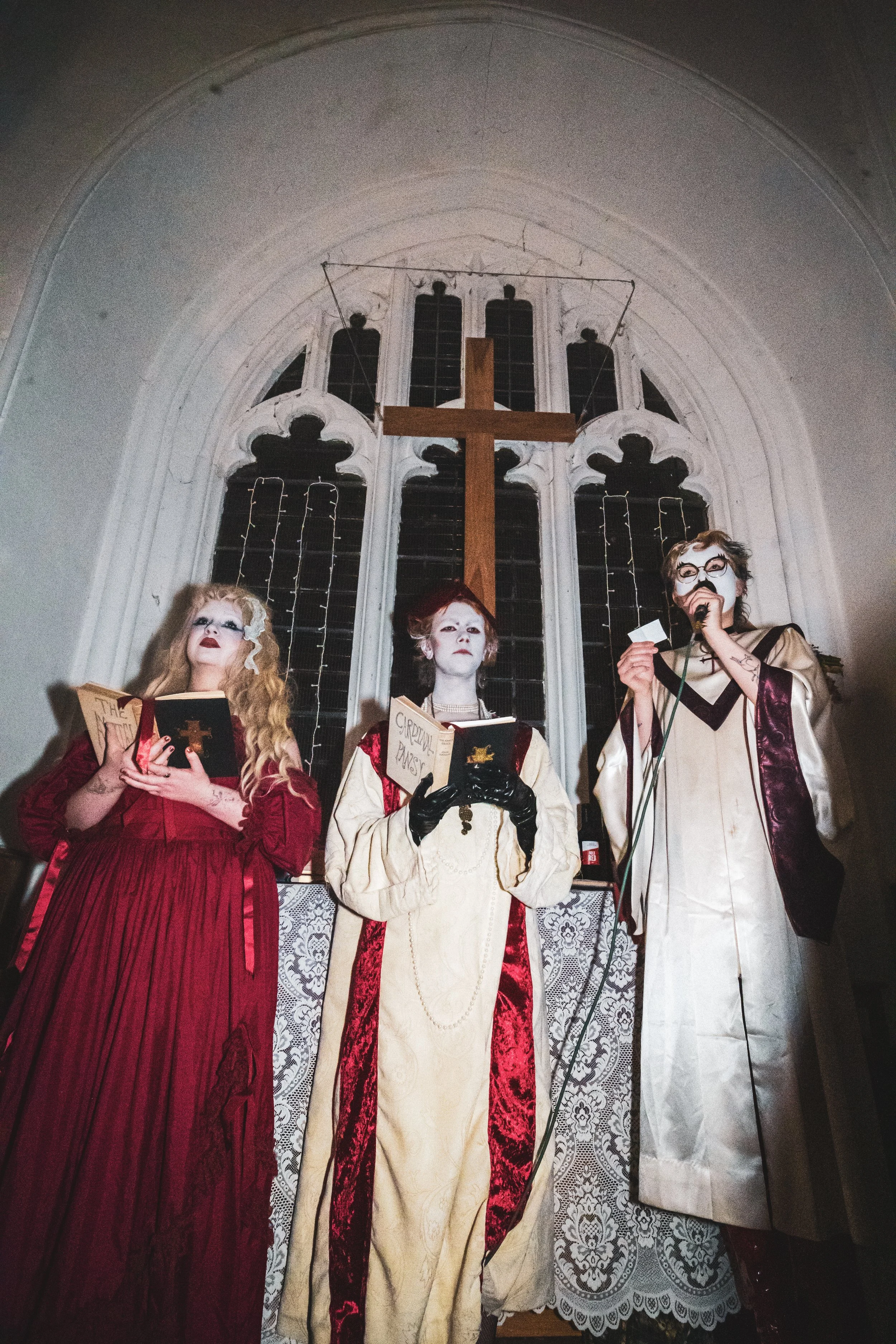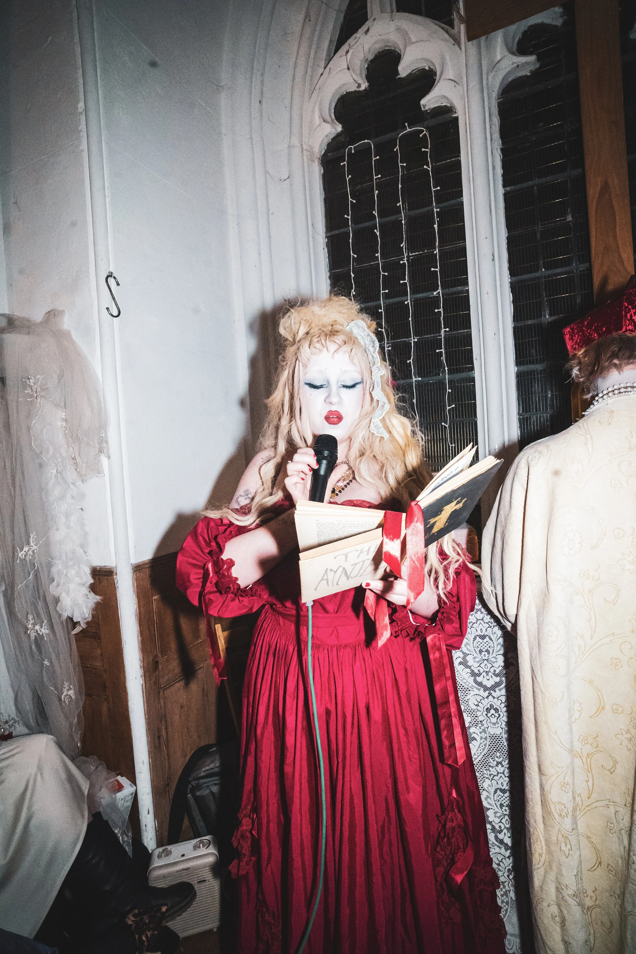 The performance was with my friends Cardinal Pansy and Saint Muffy, we read a sermon each about control and when to accept control, then had guests come to the front to receive virginal blood (wine) a second hand necklace (reference to a line in the song, based on the ‘something borrowed’ part of weddings) and a plaster to heal your bruises & cuts. The mass ended with a special performance of ‘Get On Your Knees’. Everyone received an envelope with a prayer and incense instructed to burn at midnight on the release.
