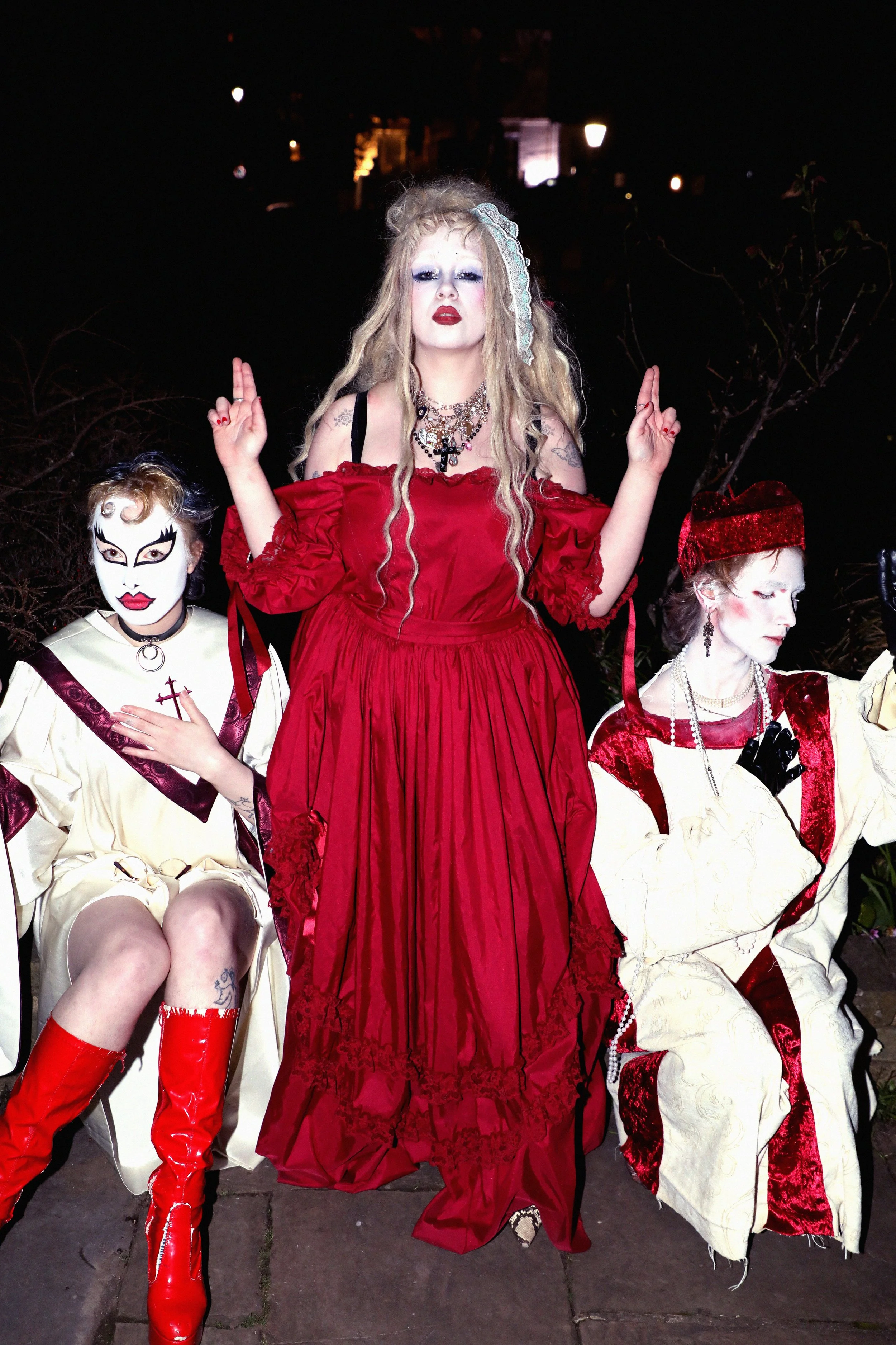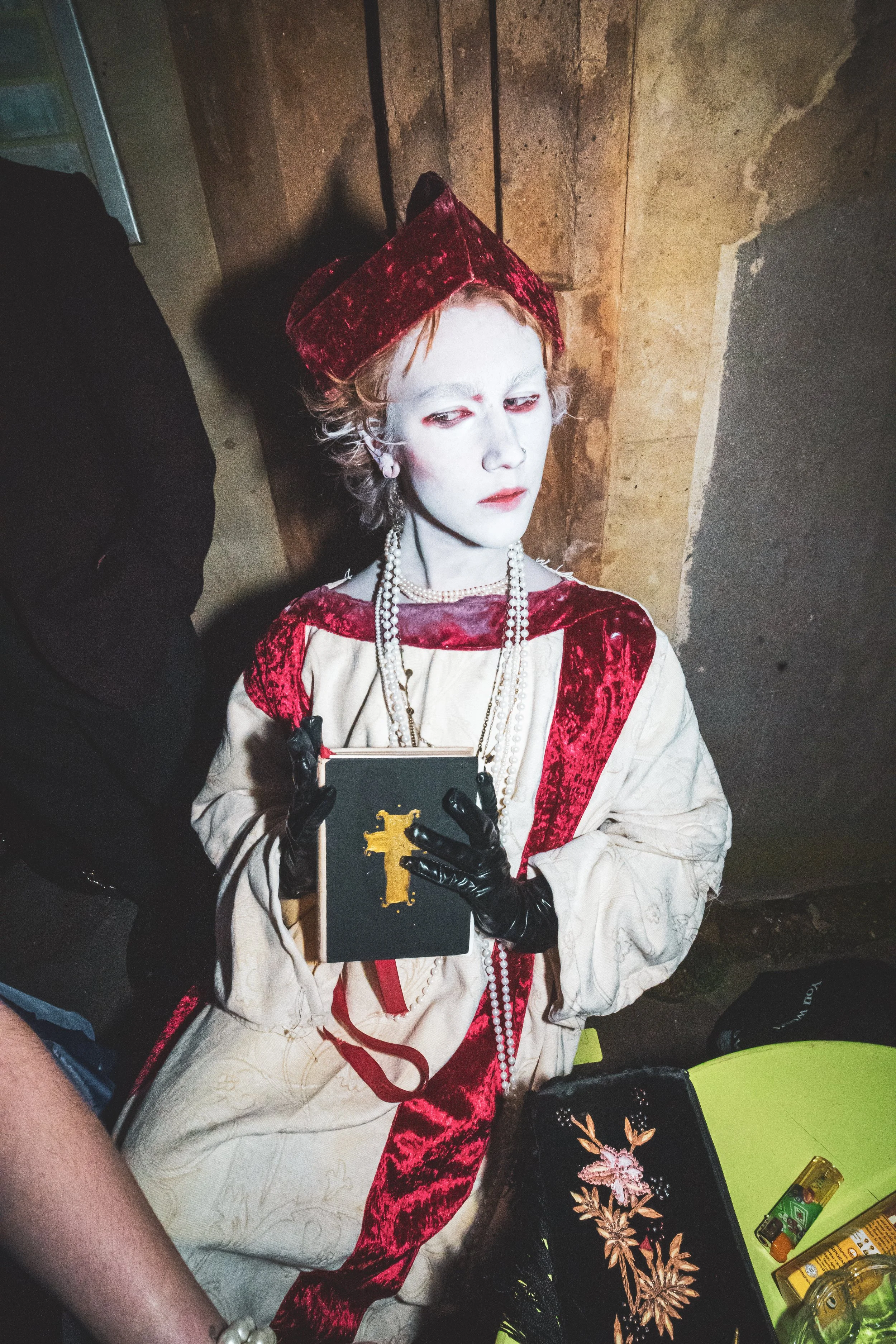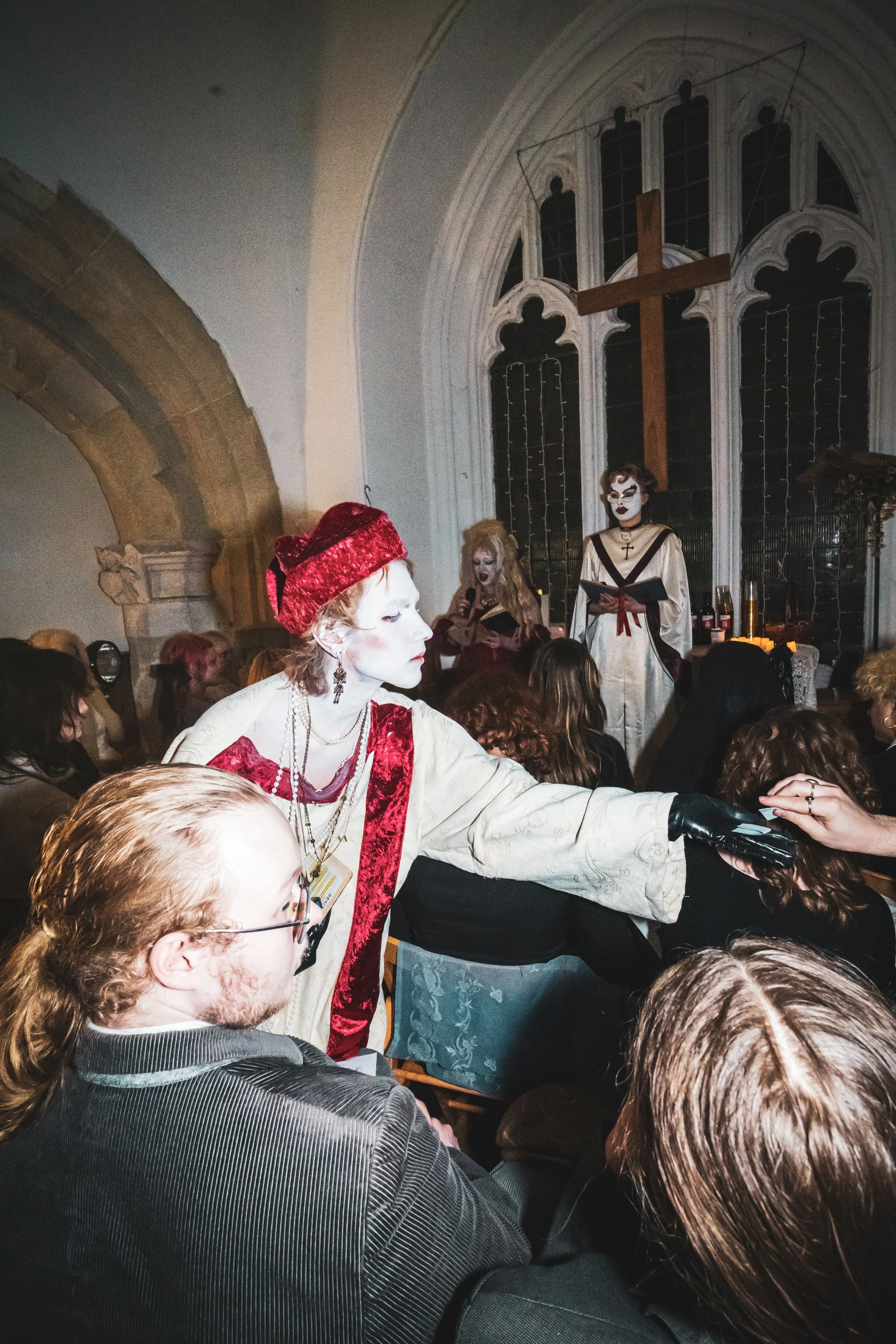 The performance was with my friends Cardinal Pansy and Saint Muffy, we read a sermon each about control and when to accept control, then had guests come to the front to receive virginal blood (wine) a second hand necklace (reference to a line in the song, based on the ‘something borrowed’ part of weddings) and a plaster to heal your bruises & cuts. The mass ended with a special performance of ‘Get On Your Knees’. Everyone received an envelope with a prayer and incense instructed to burn at midnight on the release.